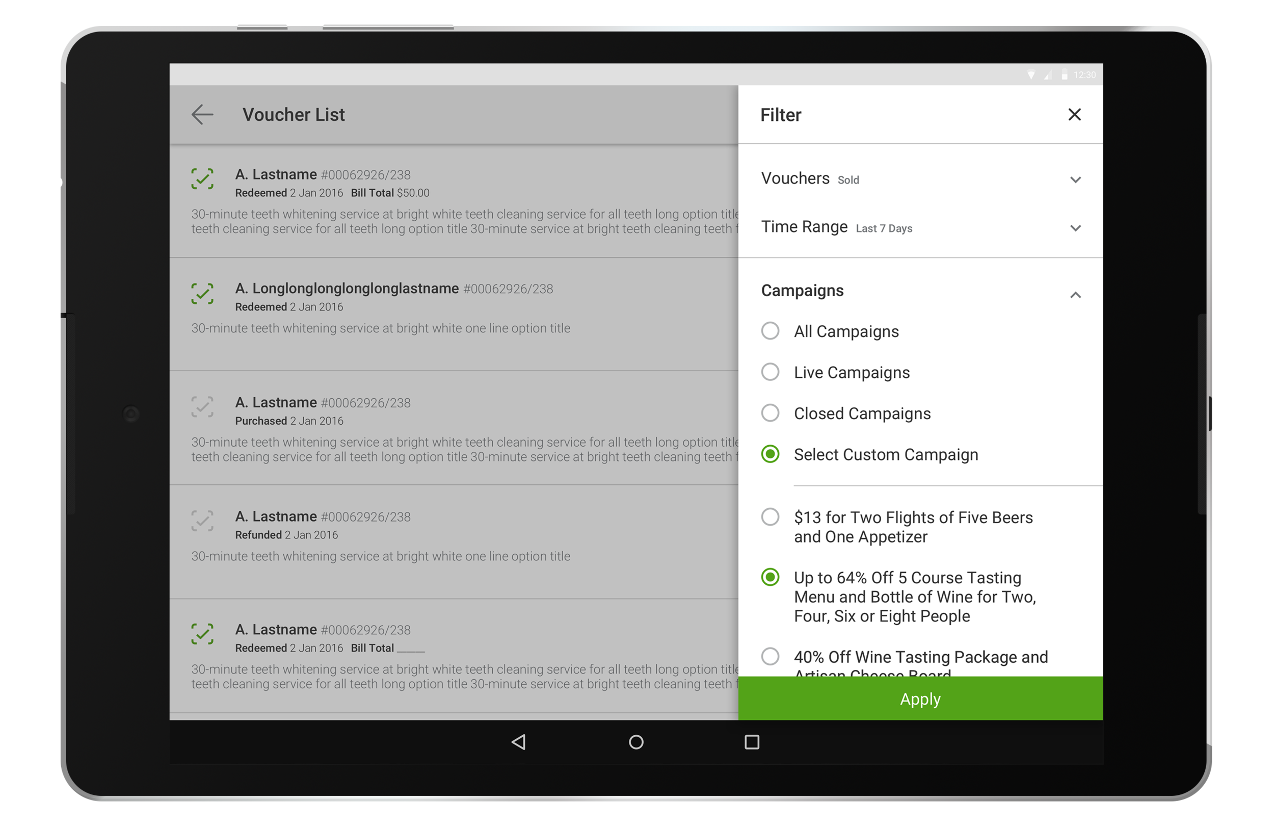 Voucher List for Groupon Merchant Android App